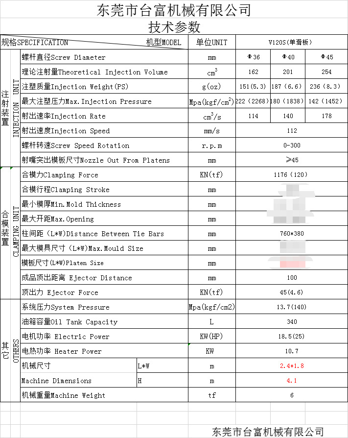 立式單滑板注塑機120噸